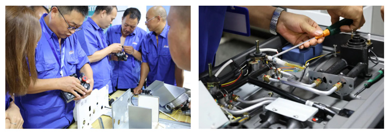 培訓(xùn)內(nèi)容還涵蓋多品類產(chǎn)品的安裝和調(diào)試,拆機(jī)實操并模擬故障的分類和排除等等,大家在理論學(xué)習(xí)與實操演練相結(jié)合中掌握了專業(yè)而實用的技能。