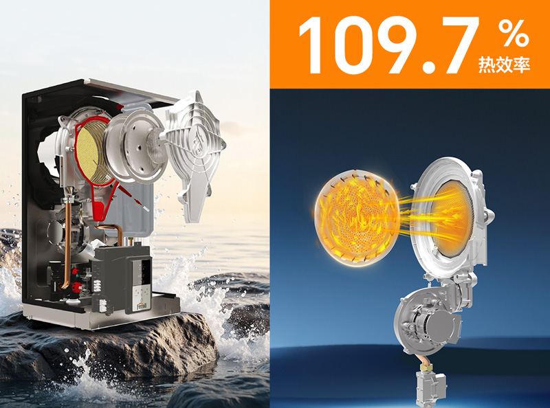 維羅納 PRO 搭載專利太陽花漫射式燃燒器*,熱效率高達 109.7%*,不僅大幅提高了能源利用效率,還能有效降低氮氧化物的排放,且通過歐洲 Hydrogen Ready 氫適配認證,可實現20%混氫燃燒,更環保節能。